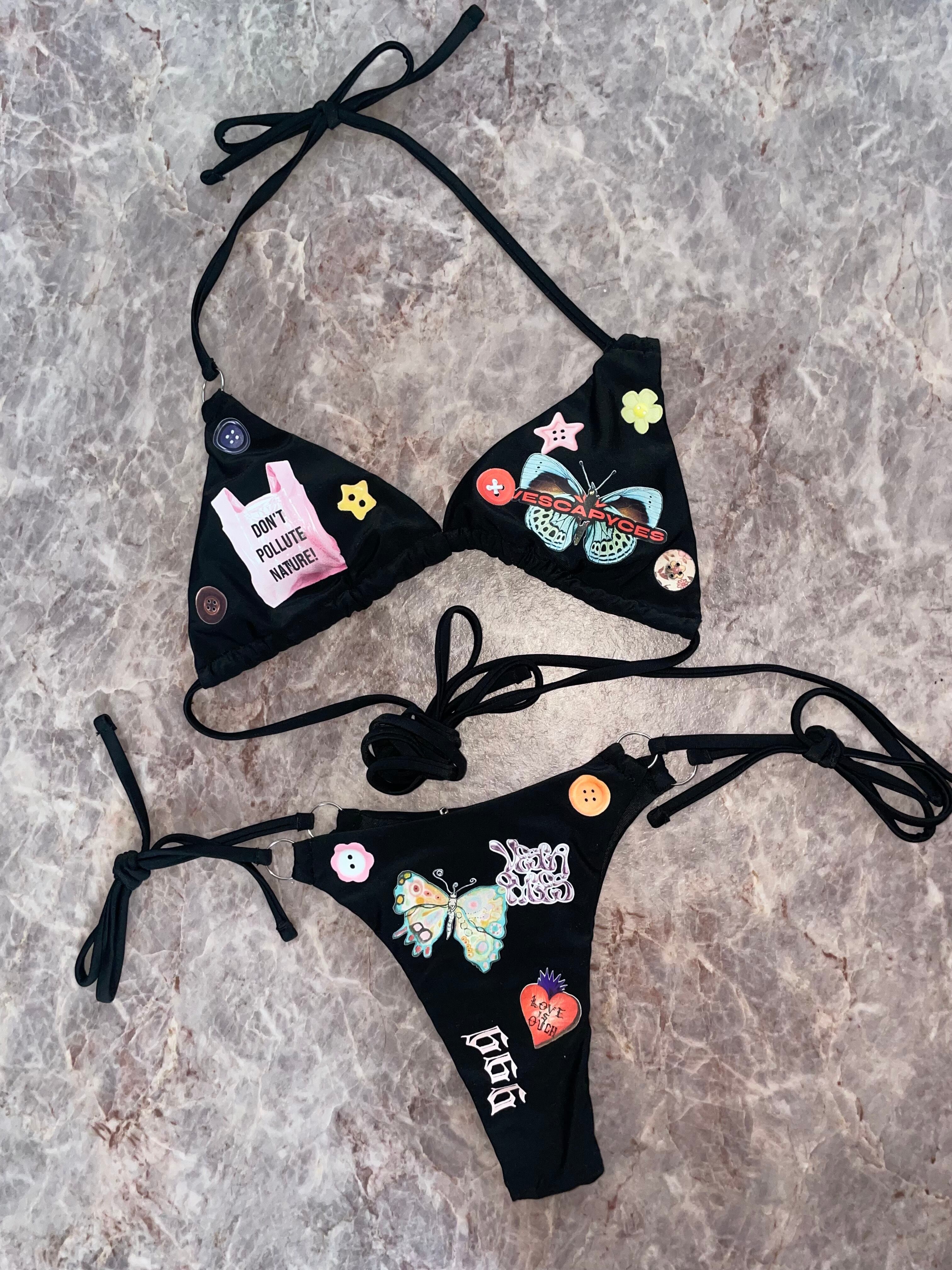 物が溢れる時代に、新しい物を作ることに罪悪感があった分、今回のSWIMWEARは、私なりに想いを伝える作品として作りました。〝自然を汚すな〟のビニール袋、タバコの吸い殻、アルミ缶等、どこかに捨てられた物もいつかは海や自然の一部になってしまいます。これは着ている人も周りの人もきっと自然を大切にするお手伝いできるSWIMWEAR。