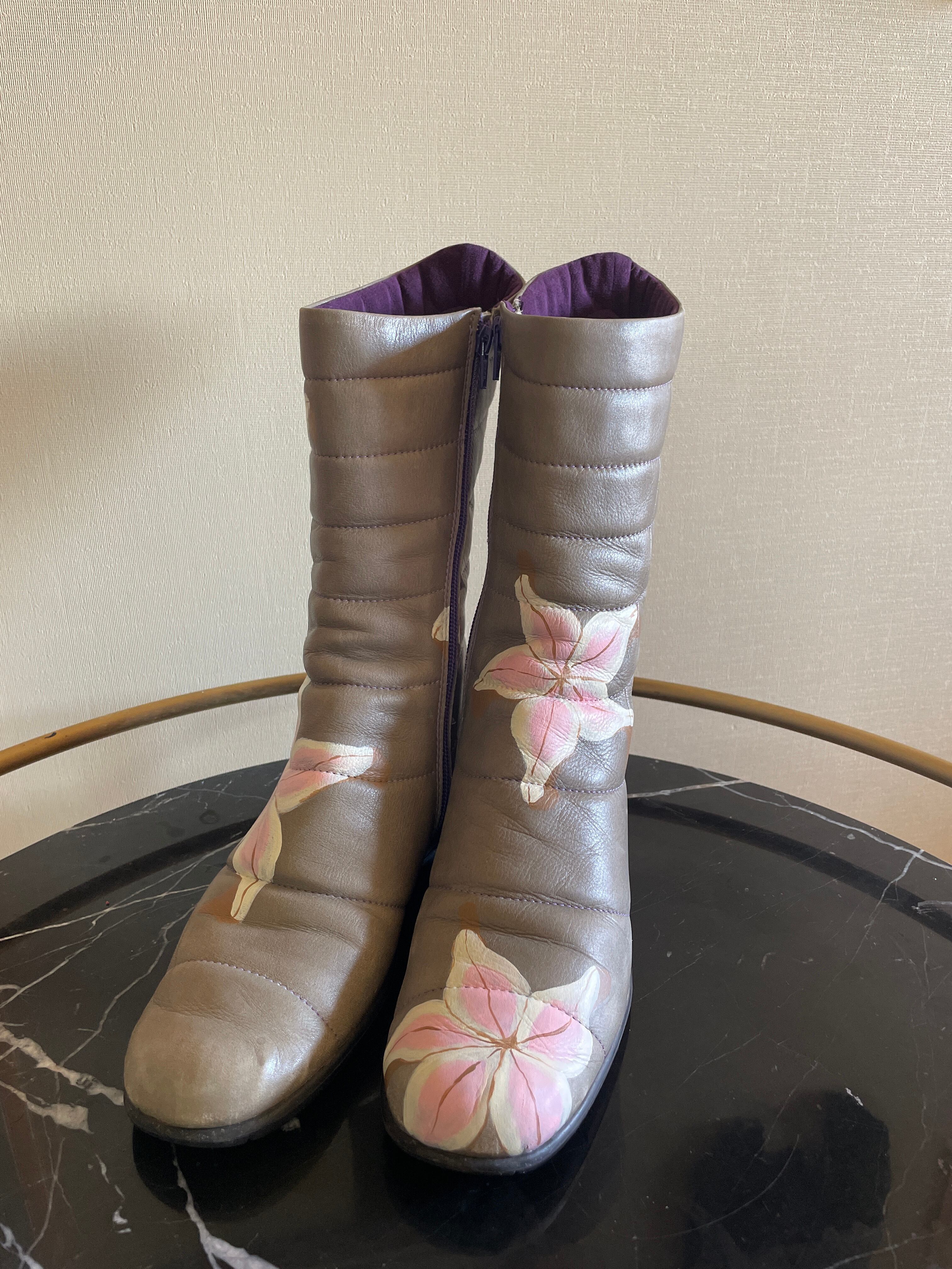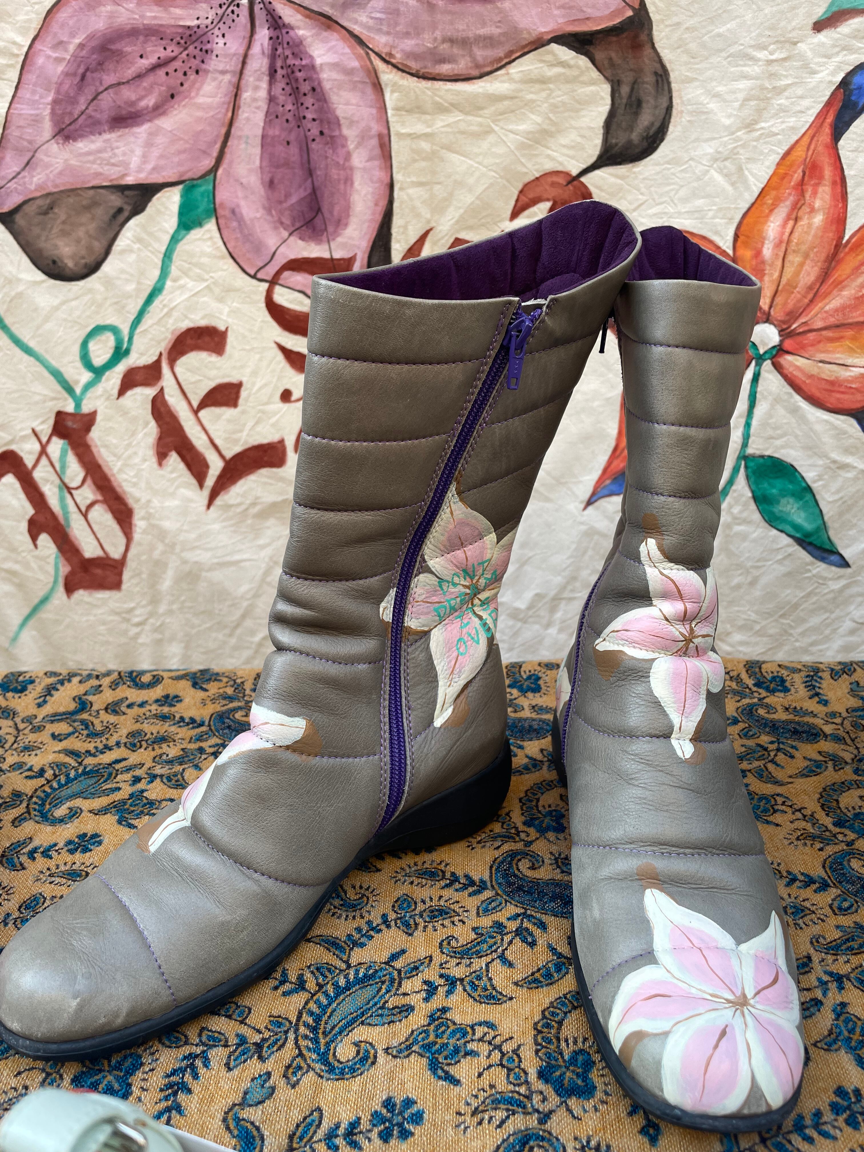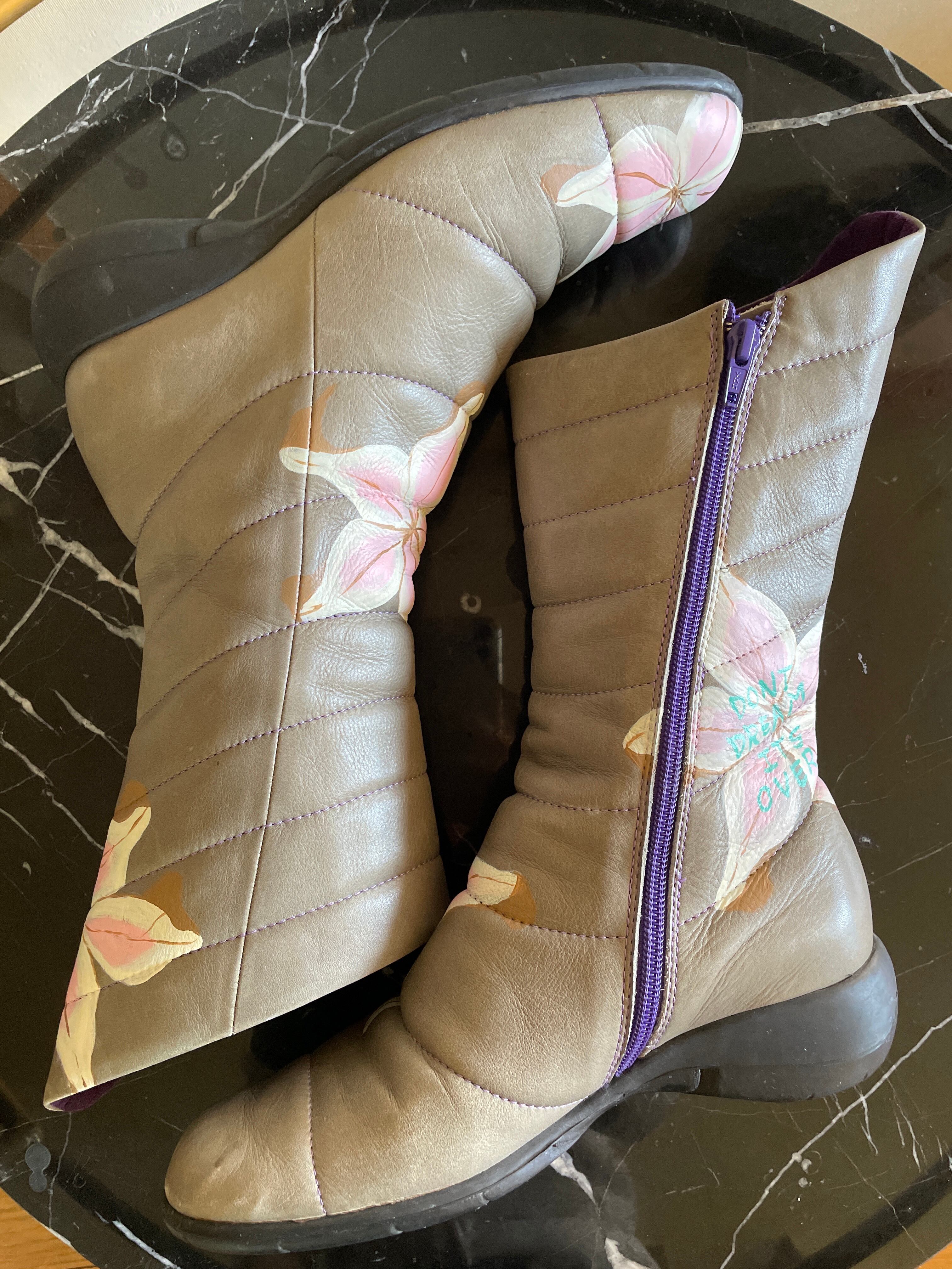 グレーにパープルのラインで色味もとっても素敵なブーツ。